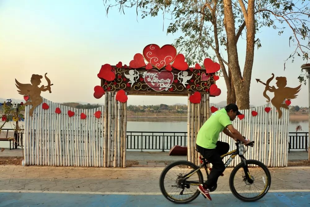 順著河岸車道,經過多個拍照點和寺廟,騎累了!停下來休息、拍拍照。