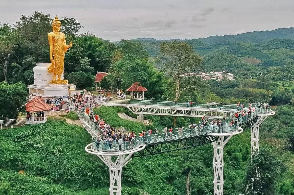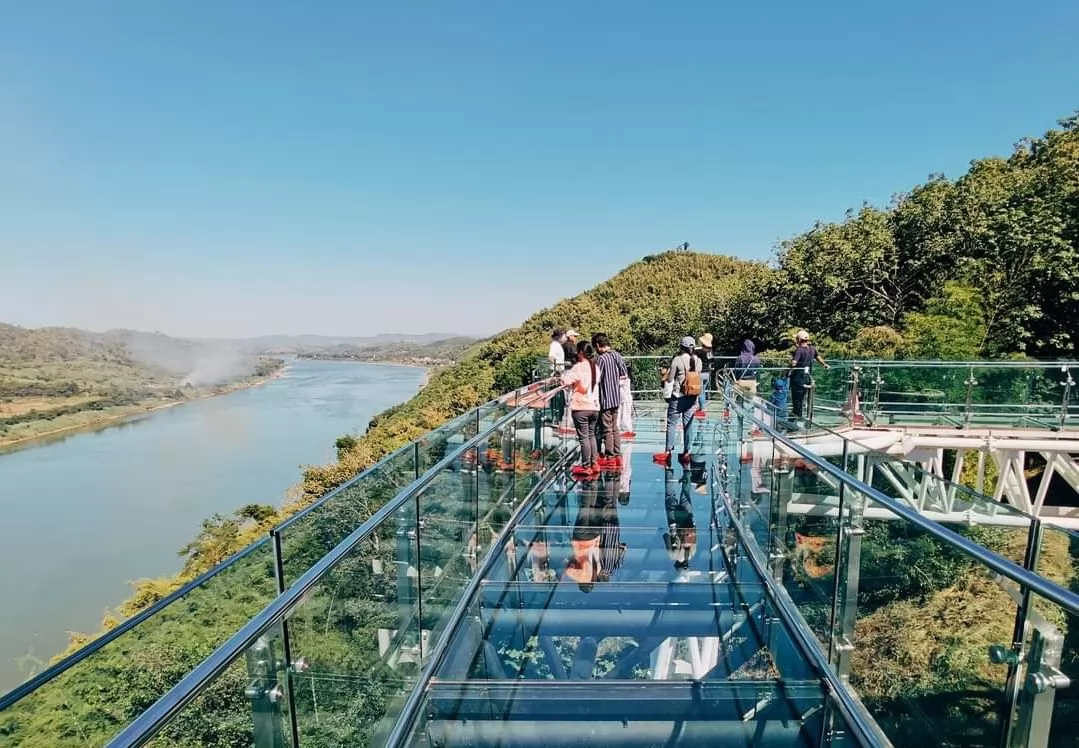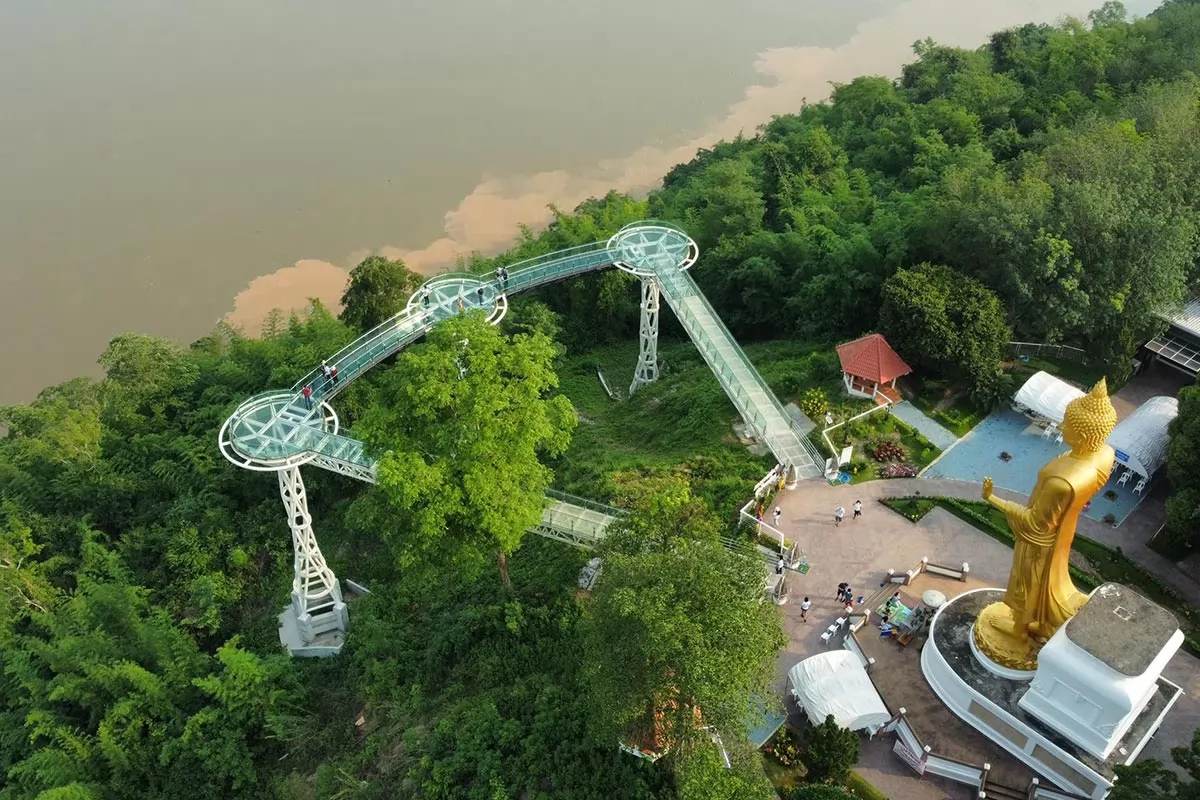 Skywalk Chiangkhan(สกายวอล์ค เชียงคาน),清康新地標,建在山頂上的Phuk Ngiw寺廟旁,因此又稱之為Skywalk Phuk Ngiw,高80米、長達100米的三角玻璃步道,可以俯瞰湄公河和寮國村落,拍美照。