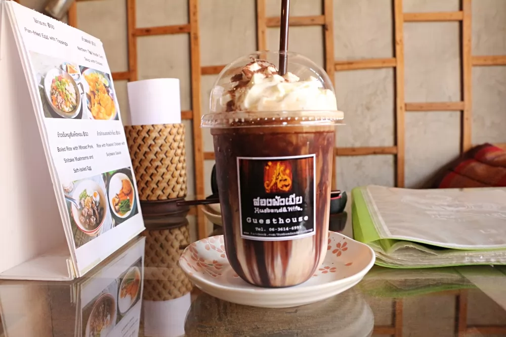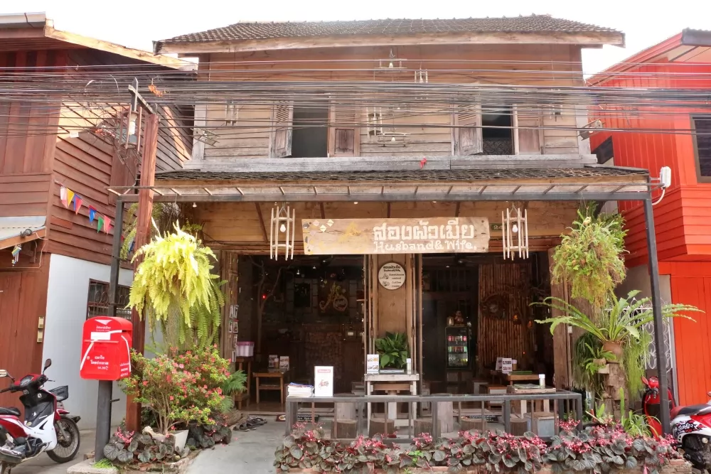 從玻璃步道回到市區,退房後,可以找家咖啡店用簡餐,推薦Husband & Wife Guesthouse(สองผัวเมีย เกสท์เฮาส์),這裡有飯類簡餐、粿條和泰北麵食,也有各式咖啡,價位中等。