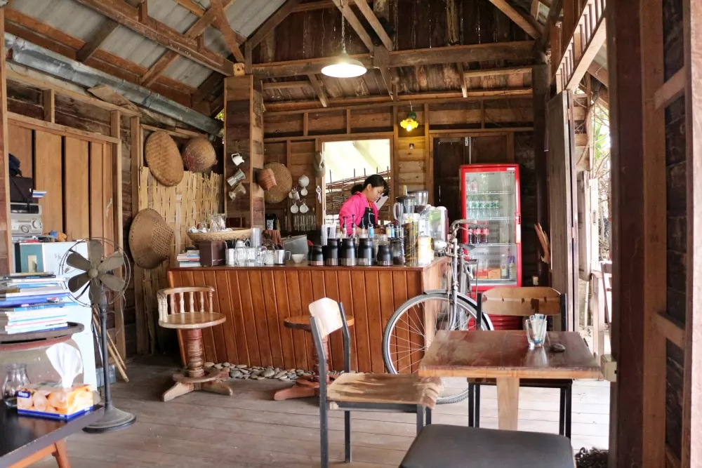 推薦這家沒店名的chiangkhan coffe老屋咖啡店,就在早餐店旁邊,屋頂和牆壁都被綠植被給包裹,店的設備和裝飾不起眼,但咖啡很好喝,冰拿鐵和熱美式,價位40-60銖,可以坐靠外的座位,邊喝咖啡邊賞河景,很輕鬆!