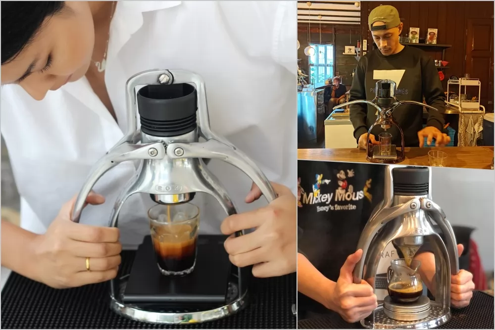 ROK手壓式萃取義式濃縮咖啡機,外觀有設計感,可直接從上方加水,快速方便。手壓可提供強大壓力來萃取咖啡汁。現喝現萃,享受濃縮就從這一刻。