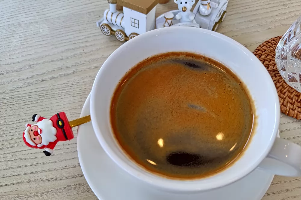 隱藏在巷子裡的咖啡店,店也不大,但是裡面的裝飾別緻又可愛,每逢節日還會精心佈置,來的時候,正是聖誕節,聖誕樹打造雪白世界,聖誕老人散佈四處,還有老闆娘收藏的黃小鴨,環境很溫暖舒適。