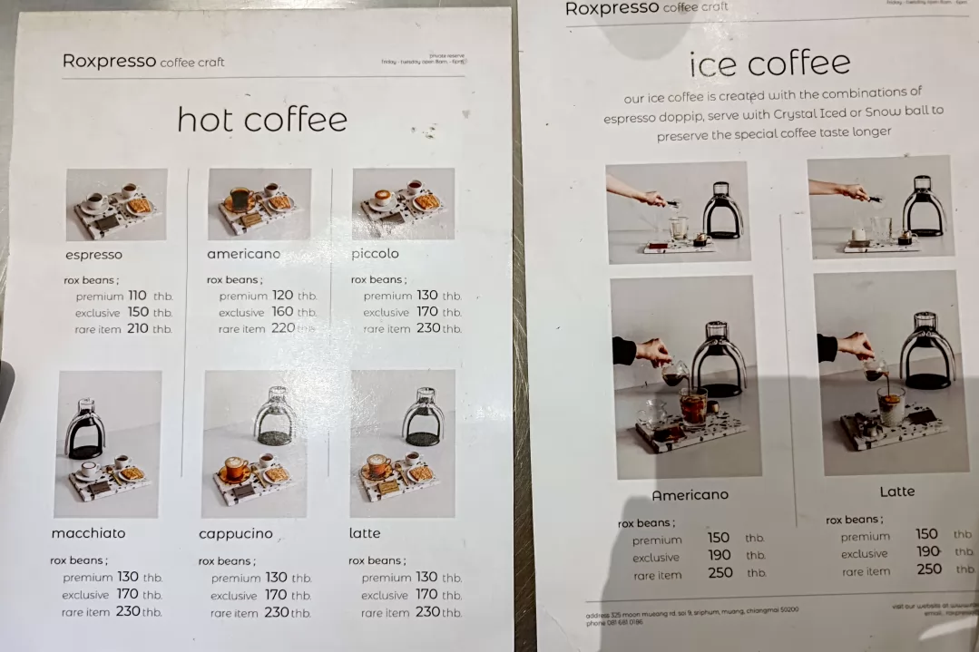 咖啡價格從110-250銖不等,這家入選泰國美食媒體2022年人氣店。