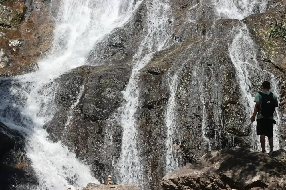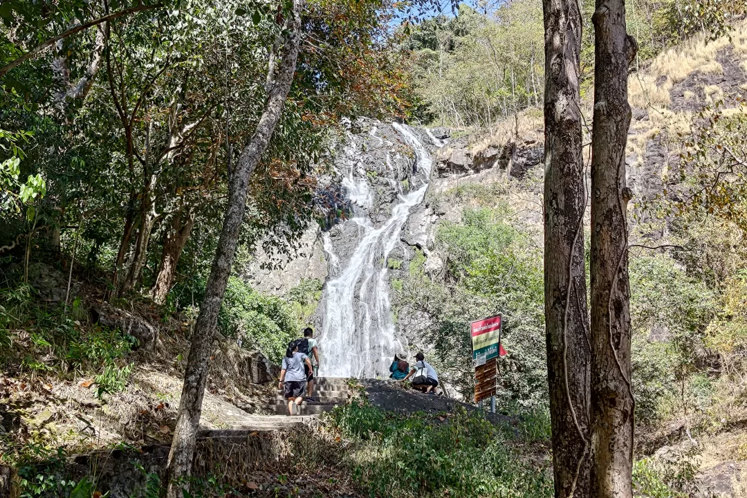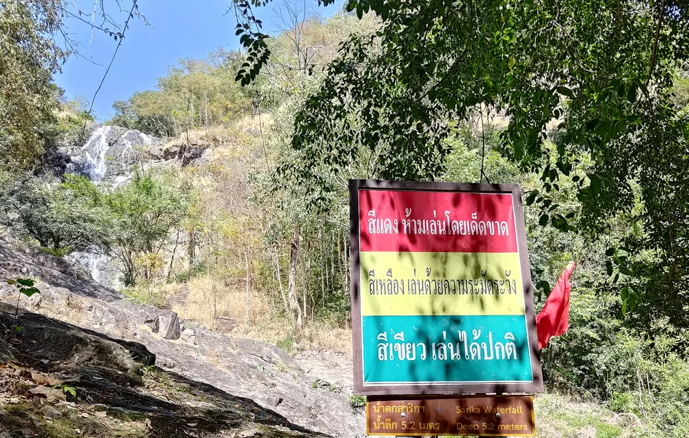 很快就來到薩利卡瀑布(Sarika Waterfall;น้ำตกสาริกา),隸屬考艾國家公園,門票比照國家公園,泰國人40銖,外國成人200銖。