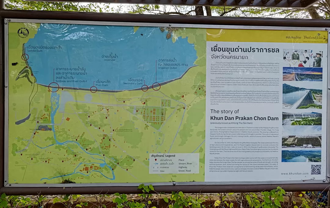 水壩為前九世皇的德政之一。在群山環繞的山林中,費時5年來建造2.5公里長的攔水壩,有效降低下游區的水患,增加農業灌溉的效益。大壩口高93公尺,全水泥打造,目前依然為全泰國最長的大壩。