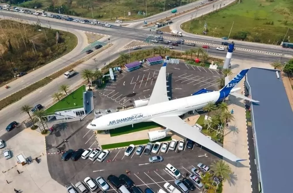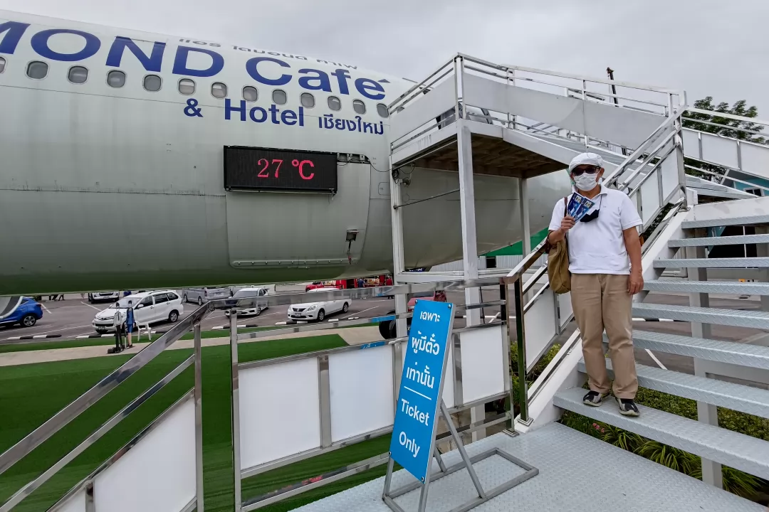 Air Diamond Cafe,是清邁的第一家飛機咖啡店,位在湄登區,2021年底開業,據說老闆花了超過100萬美元買來退役的空巴A330-300,將飛機重新塗改、裝潢,打造成豪華的咖啡店。