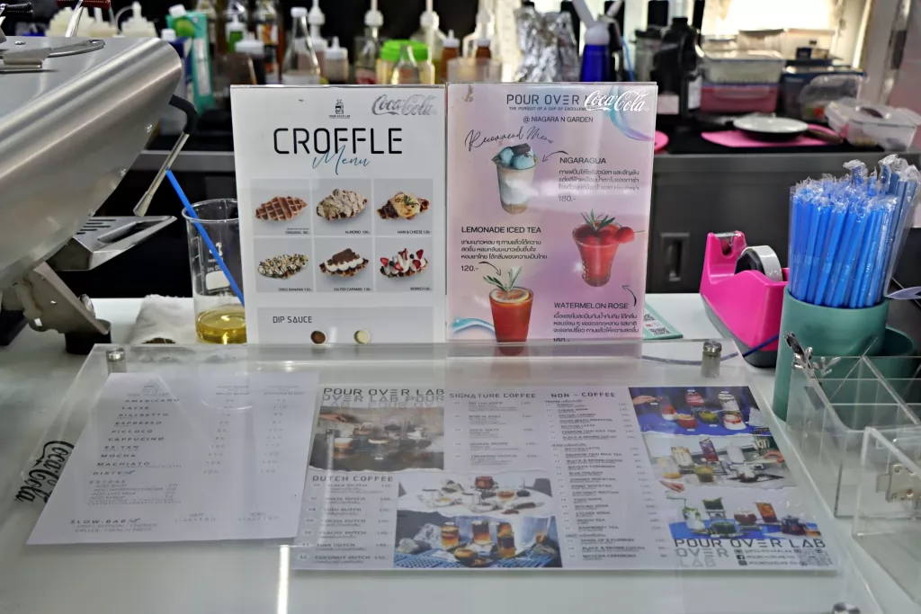 客機艙裡的咖啡店,除了櫃台,座位也有沙發、木椅和原飛機使用的座椅,服務員工也是身著空姐的制服,讓來光顧的客人有在飛機的感覺,出不了國,來這裡喝杯飲料也不錯!飲料1杯平均150銖左右,價錢合理。