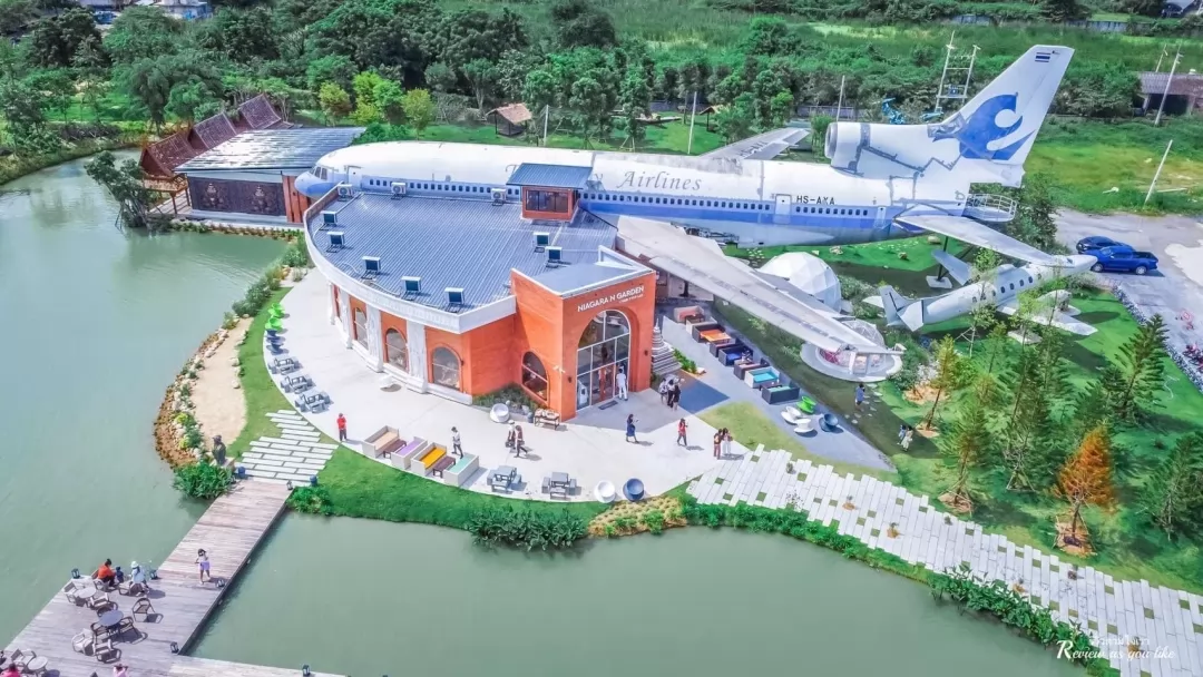距離曼谷1小時車程的佛統,有一家超霸氣的Niagara N Garden莊園咖啡館,裡面停了8架飛機和軍艦,還有湖泊和瀑布墻可以拍照打卡。