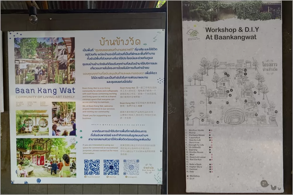 社區在2015年開幕,吸引了本土設計師、藝術家和初創企業共襄盛舉,入住10棟兩層樓的傳統泰北建築,每棟房子都有生活區和工作區(一樓通常是工作室或商店,二樓則是文創者住的地方);在社區中間的廣場是共用空間,不時舉行市集及音樂活動,形成了一個「小清新」的文創藝術中心。