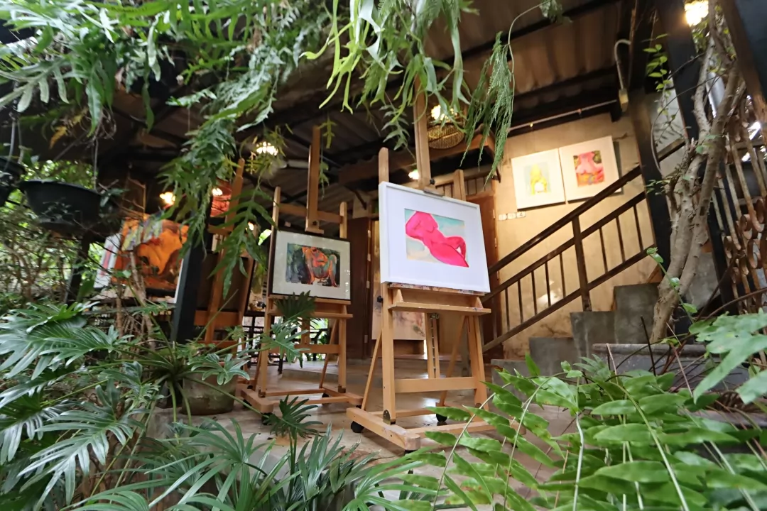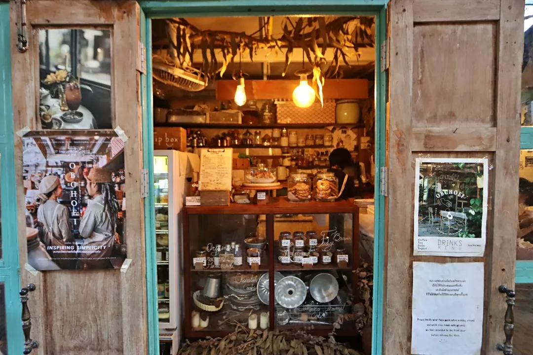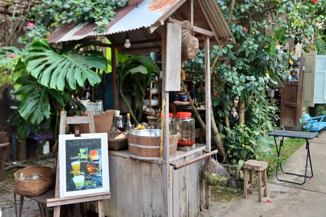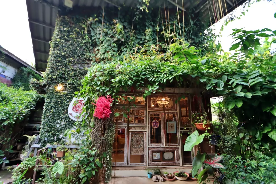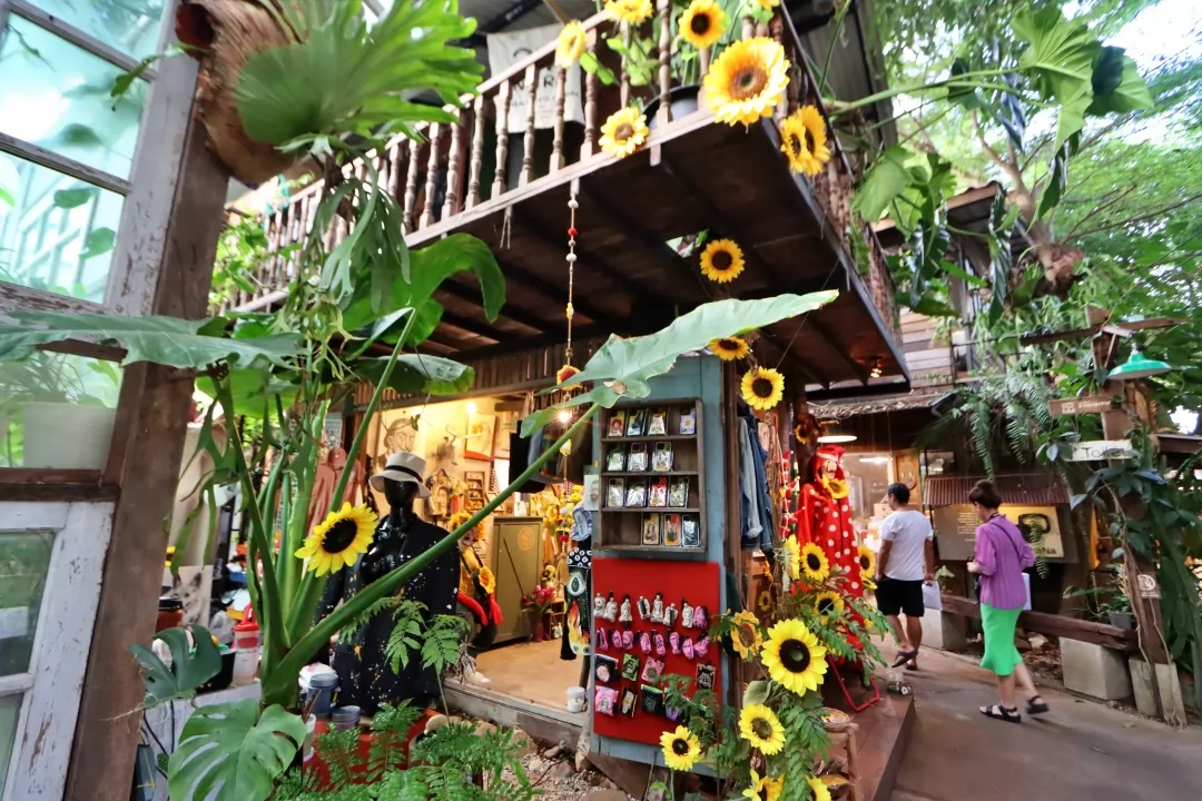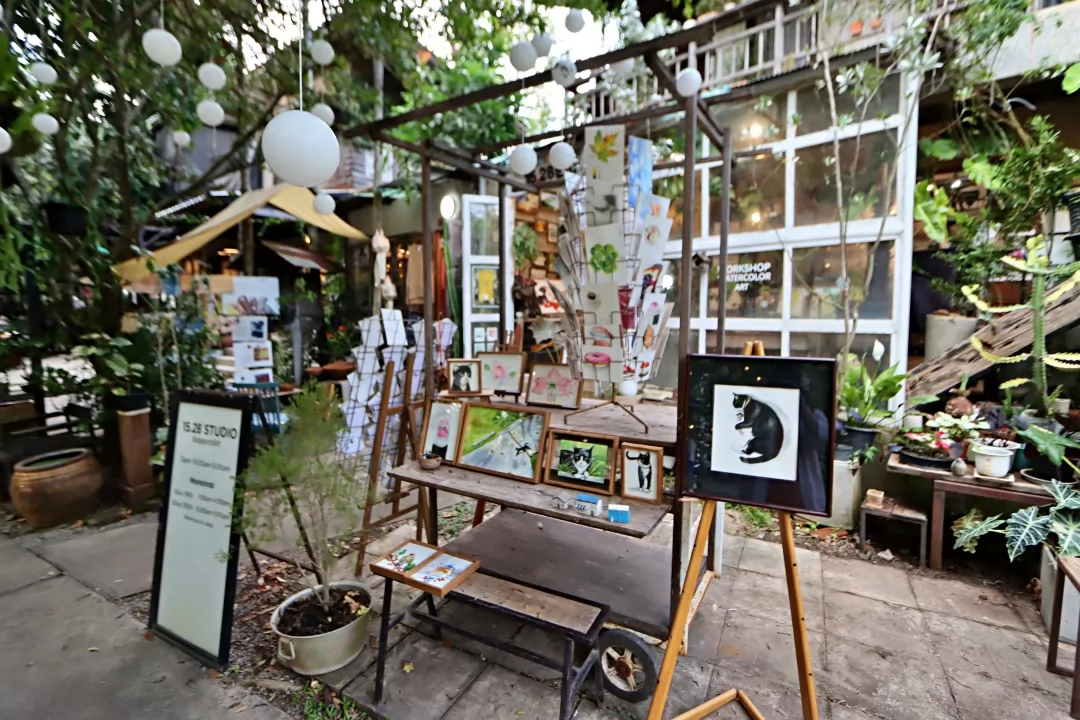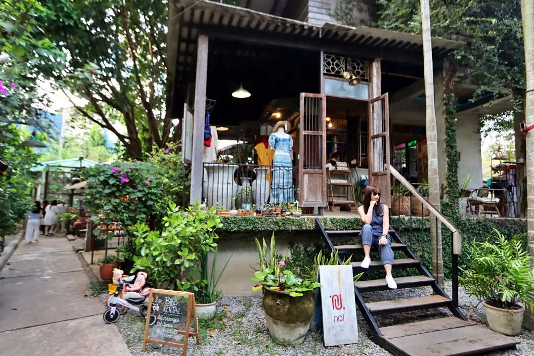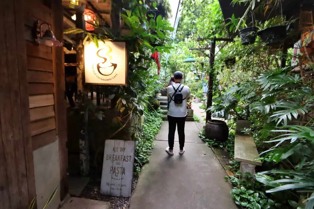 順時針走,可以逛到以畫作為主的Gallery Kang Wat、民宿及雜貨店Enough for Life、復古懷舊風格的咖啡店 The old Chiang mai Cafe’ & Espresso bar、以牆身書櫃來吸引人的咖啡店Mahasamut Library,這些經主人打理後的風格建築加上綠意盎然的環境,每個轉角、店門口,都是個很棒的拍照背景。