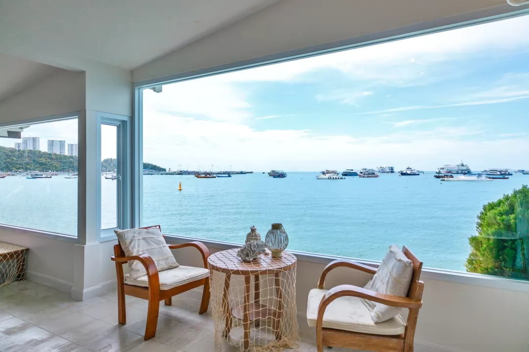 這裡的亮點是安裝大玻璃窗的房間,最佳的觀景台,不僅擁有180度無死角的絕美海景,本身的裝潢風格走韓系簡約風。