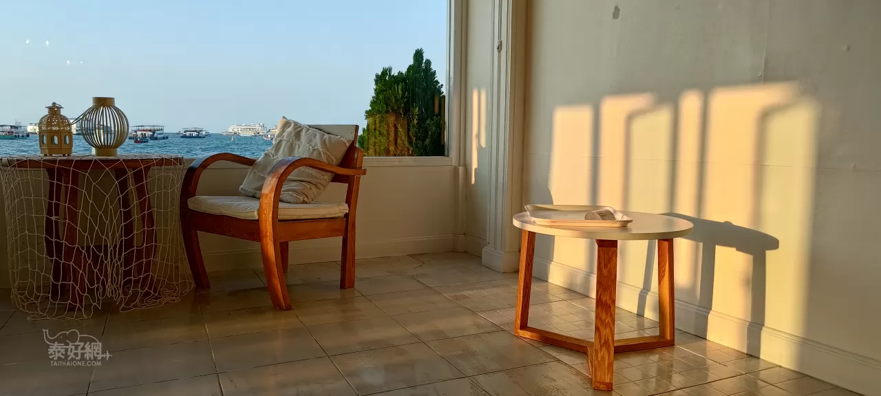 除了店內靠窗座位區外,陽台上的半露天座位也非常美,大大露台上放著雙人座位,可以吹著海風感受一下午後的暖陽。