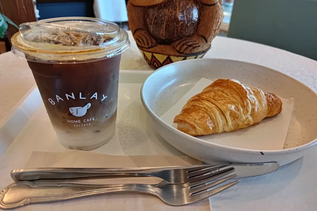 點了1份可頌(65銖)、冰拿鐵1杯(100銖)。