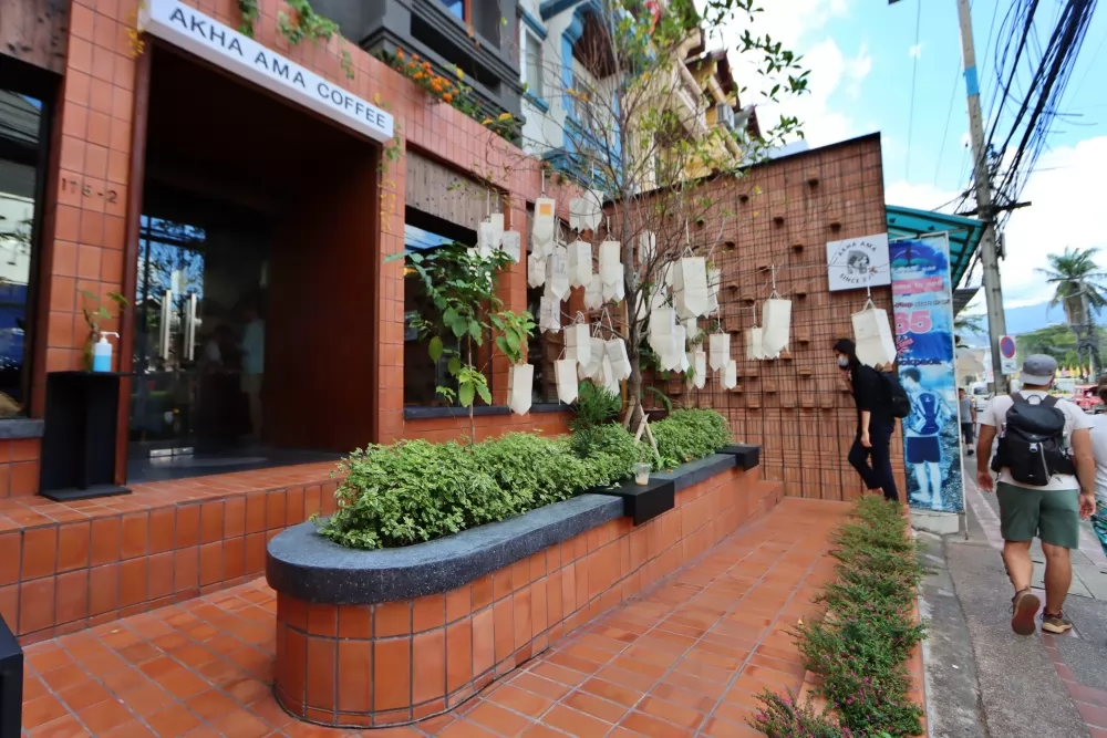 清邁超優質的Akha Ama咖啡(กาแฟอาข่า อ่ามา),帕辛寺(วัดพระสิงห์)旁的分店,趁疫情期間擴大翻修,紅磚打造工業風的新面貌,引來更多的人氣!