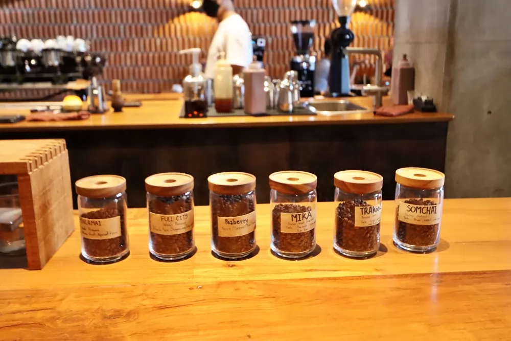 店內也有銷售咖啡豆和濾掛包,從種植、收割、烘焙,都是來自老闆Lee所在的村落,質量有保證,每包(大小不一)價格從200到540銖。