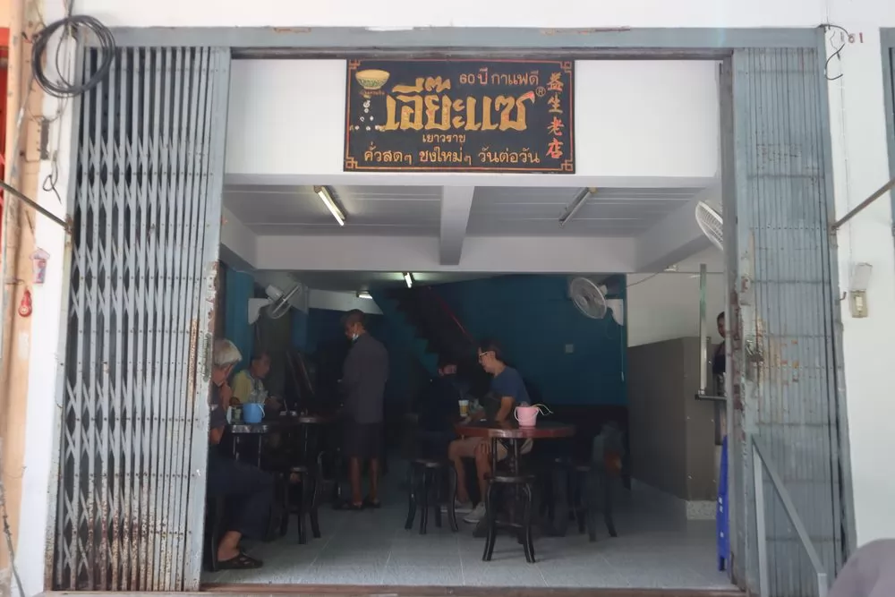 1927年開業,在不起眼的小巷裡面,可以說是泰國最早一批的咖啡店(超過60年),招牌的設計也有歲月的味道。現在轉移到200公尺外的巷道裡。