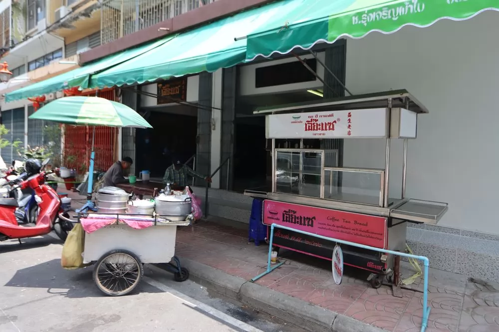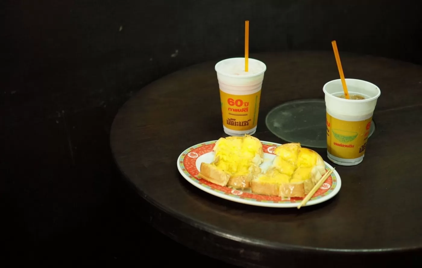 在曼谷耀華力華人社區,老阿公到超過80年的老店「益生老店(ร้านเอี๊ยะแซ)」吃早點已是習慣,這簡單的古咖啡+厚片吐司,為新的一天帶來活力!