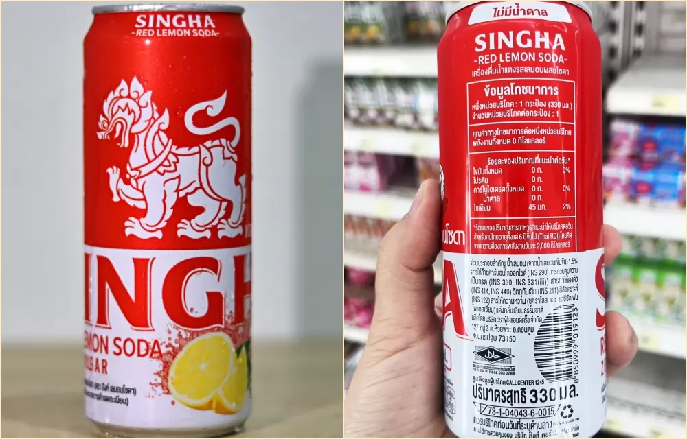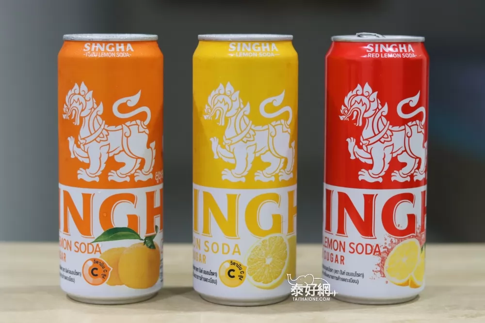 Singha Lemon Soda(สิงห์ มะนาวโซดา ),根據獅牌提供的相關資料,富含維生素C的「檸檬」,對健康有益,並賦予Singha Lemon Soda新鮮的風味。無糖配方(Sugar Free),不含卡路里。消費者既能喝水解渴,又能保持身體健康。