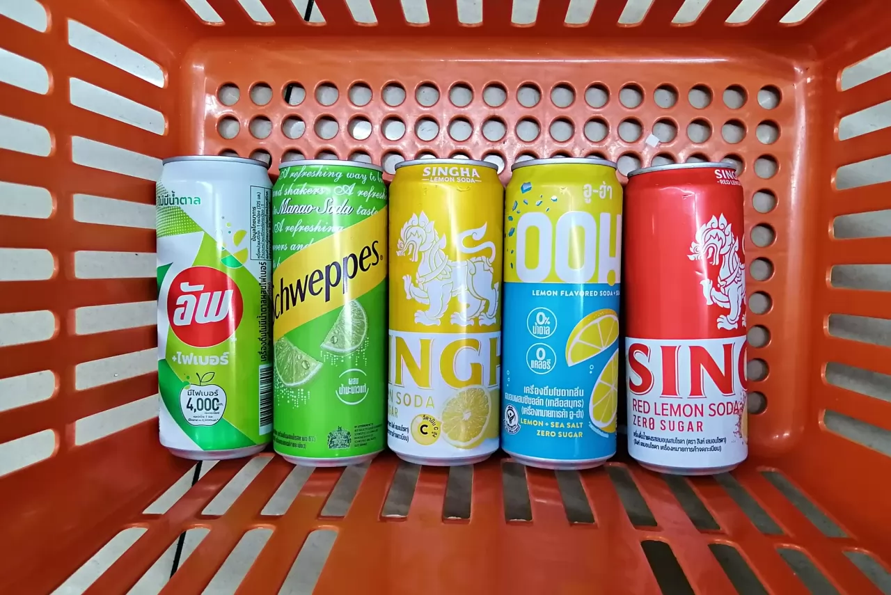 泰國飲料不斷推陳出新,象哥最近在小7的貨架上,看到多了好幾種檸檬、柚子蘇打(汽泡水)的鋁罐飲料,330 毫升,超好喝的,而且還可以當蘇打水來調酒(沖淡一些酒味),更有另一番風味,很受歡迎!推薦以下5種: