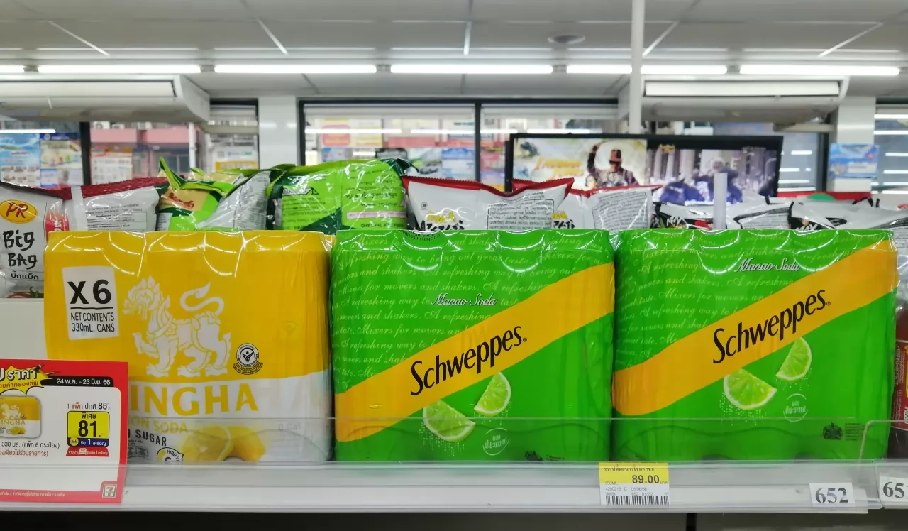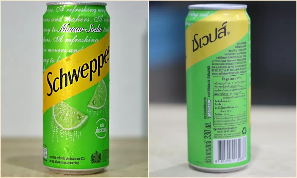 Manao Soda – Schweppes ชเวปส์ ,Schweppes歐洲飲料廠商,在泰國推出新品牌:ชเวปส์, Schweppes,330 毫升鋁罐,屬於碳酸飲料和汽水,這款標示的成份:糖12%;濃縮酸橙汁6%,1罐同樣是16銖,氣泡味重一點,蠻好喝的!象哥認為很適合用它來調酒。