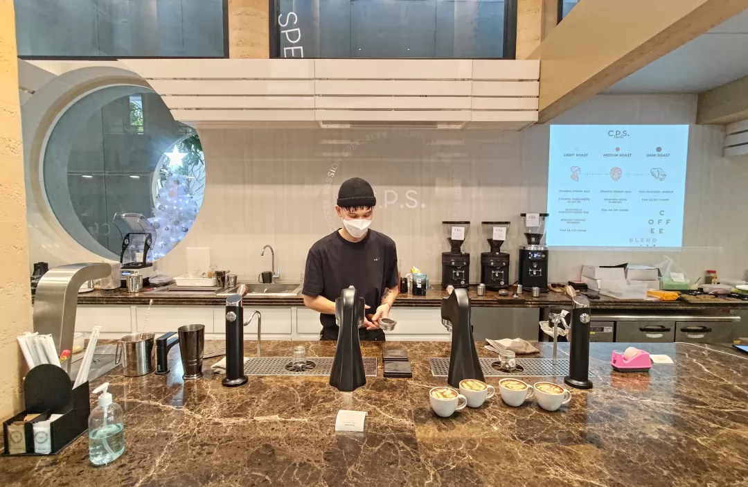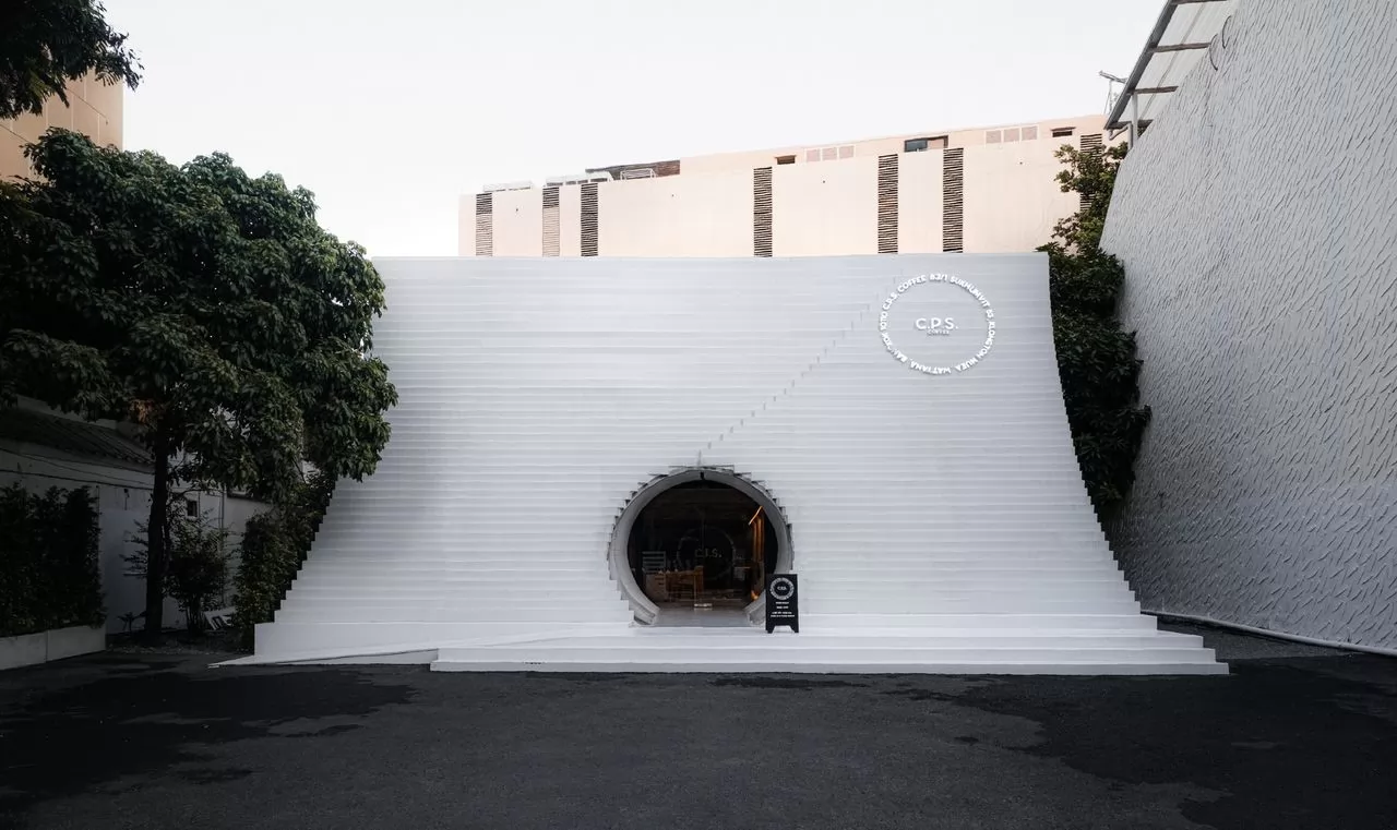 這家在通羅(Thong lor)地區的分店,也是CPS Coffee的旗艦店,大投資找設計師蓋出創意的建築,外觀是一個梯子設,計引人注目,可以上去拍照。