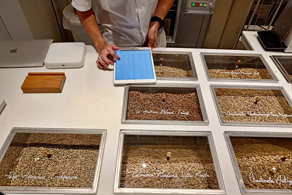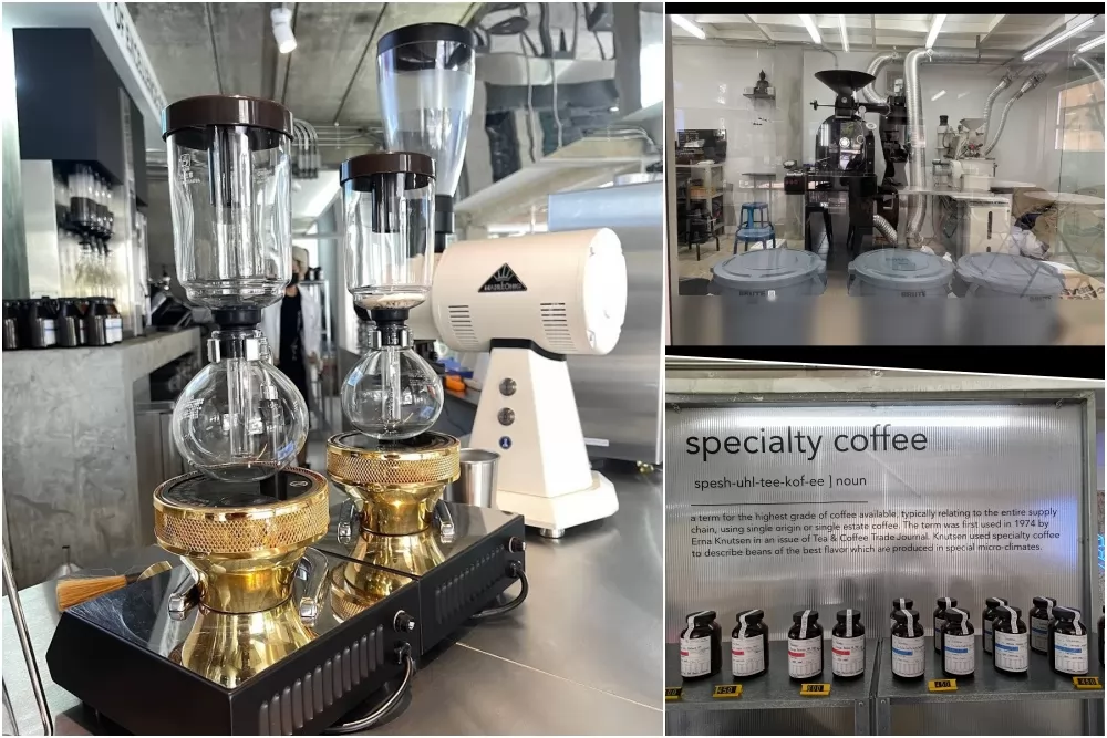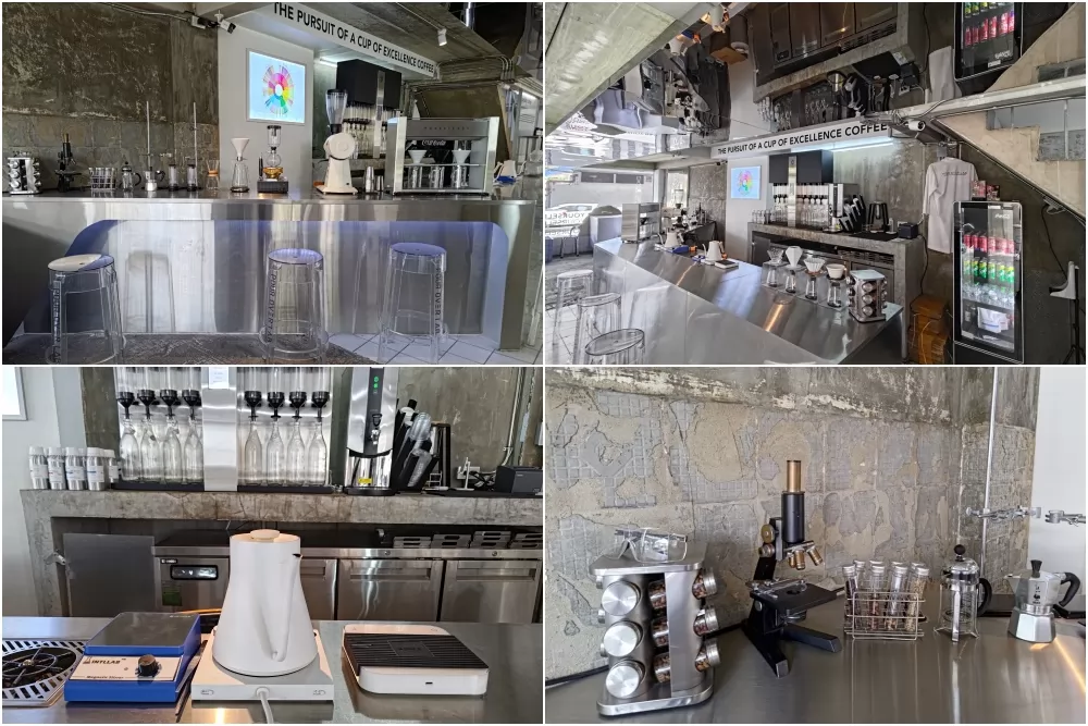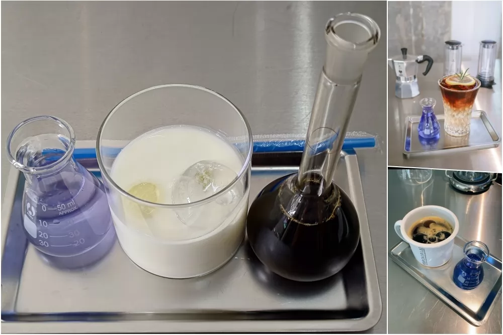 點好咖啡後,身穿白袍的咖啡師便會在其咖啡吧台,開始拿出工具,試管,不鏽鋼盤,諸如此類實驗室用具,調配咖啡起來。咖啡豆來自本地、印尼、哥倫比亞、巴西等產地大國,有一定質素。