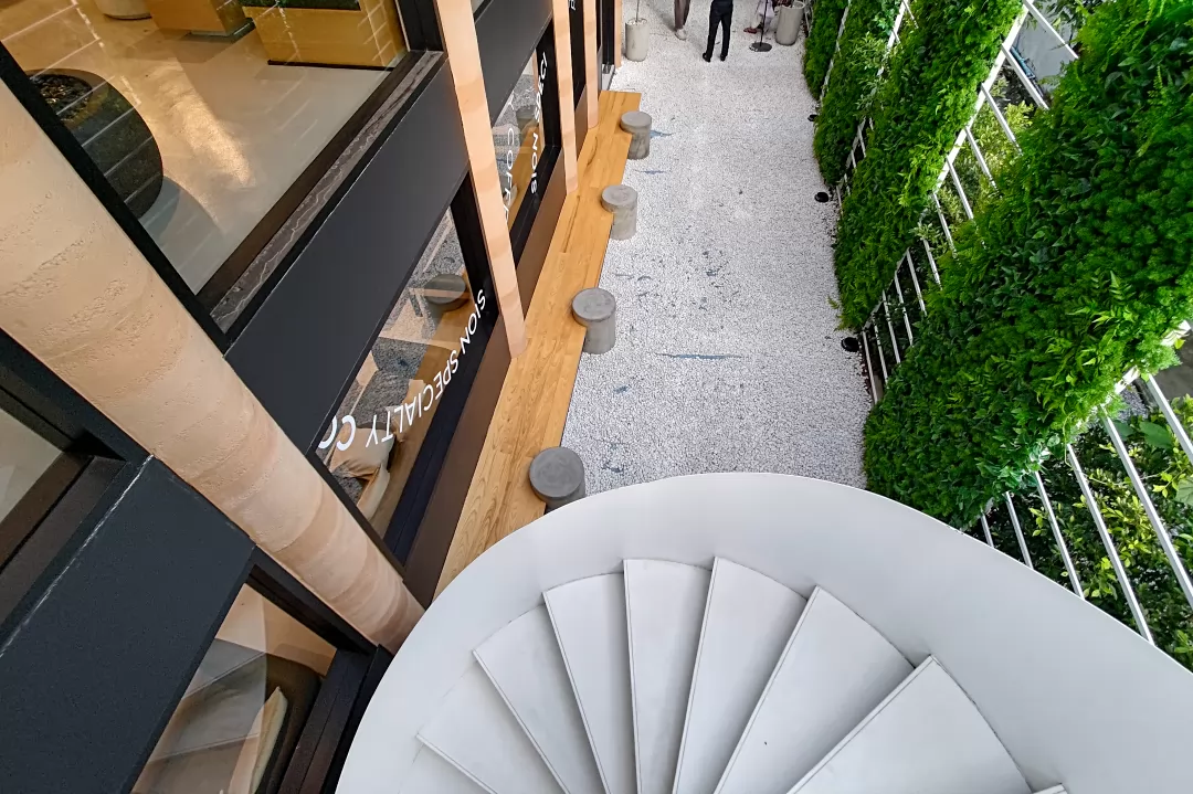 有一個白色螺旋樓梯通向二樓,這個角度真的很適合拍照。