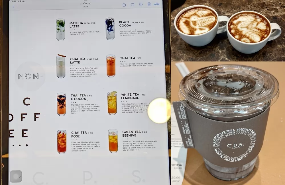 熱拿鐵的品質沒話說;非咖啡飲料的熱可可(120銖)純厚夠味。