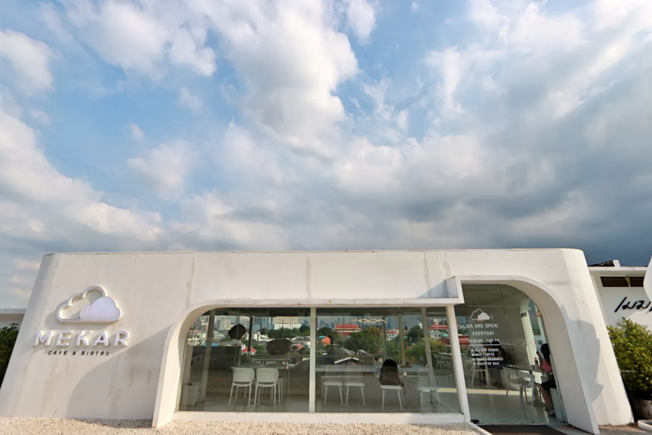Mekar cafe & Bistro在舊大樓頂層打造「藍天白雲」很火的網紅咖啡店。