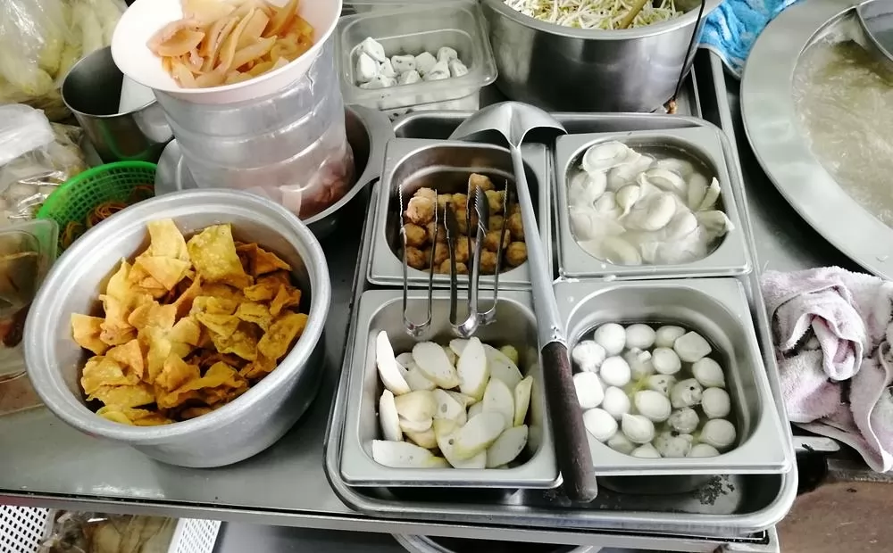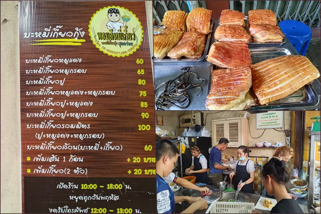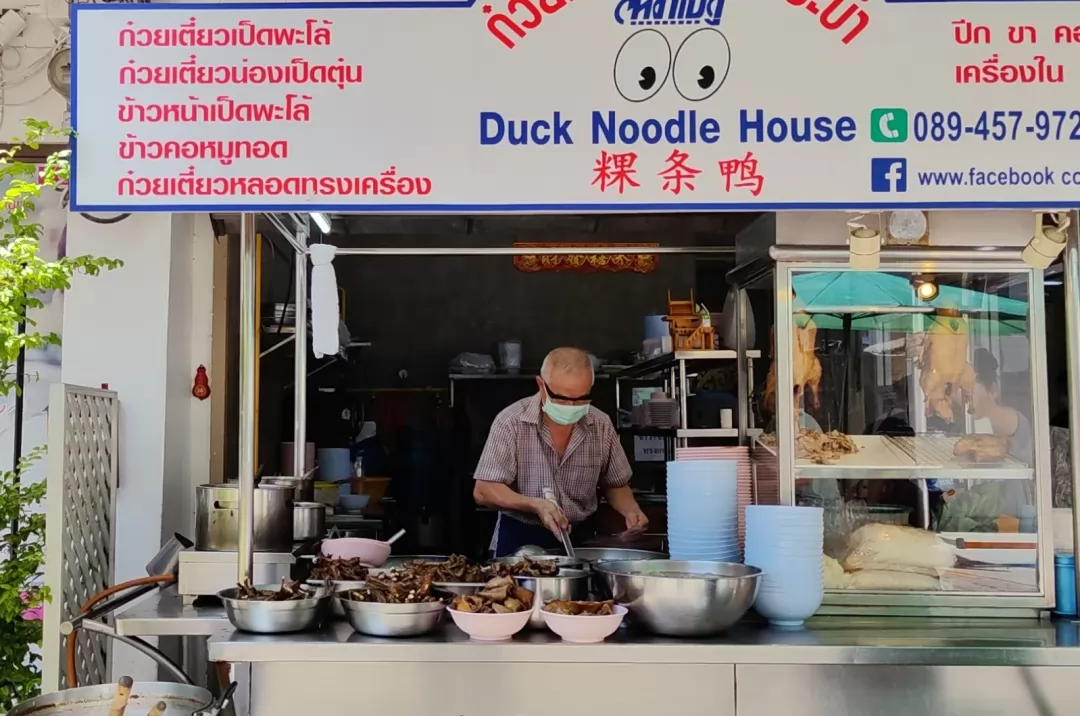 除了這一特色之外,這裡的鴨肉粿條也很好吃,開店超過35年,早已在曼谷打出名號,中式口味的鴨肉粿條,征服很多食客的胃。店家選用的是源自中國的鴨子,再經過中式食材調理配方的滷味包來燉煮,鴨肉滷得剛好,不會咬不動。店是以「鴨肉粿條」起家,普通1碗50銖、特級60銖,可以選擇鴨肉的部位,像是鴨翅膀、鴨嘴、鴨腿、鴨腳或是切片的鴨肉,再來是選寬粿條(河粉)、細粿條、白麵條及黃麵條(雞蛋麵)。