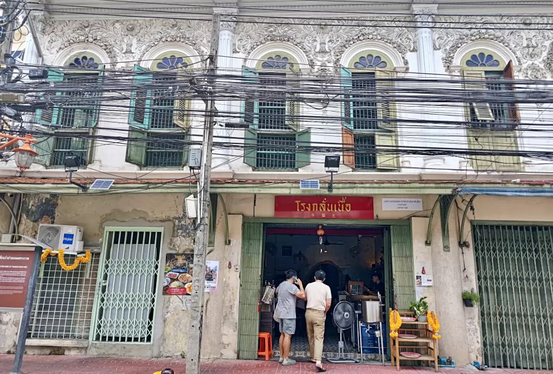 曼谷唐人街區域的牛麵王โรงกลั่นเนื้อ – ทรงวาด,2023年在舊社區老屋新開的,門上店名為「牛面王」,成為最近很火的牛肉麵店,引起象哥的注意。