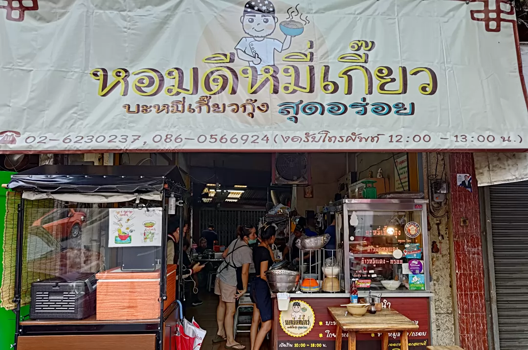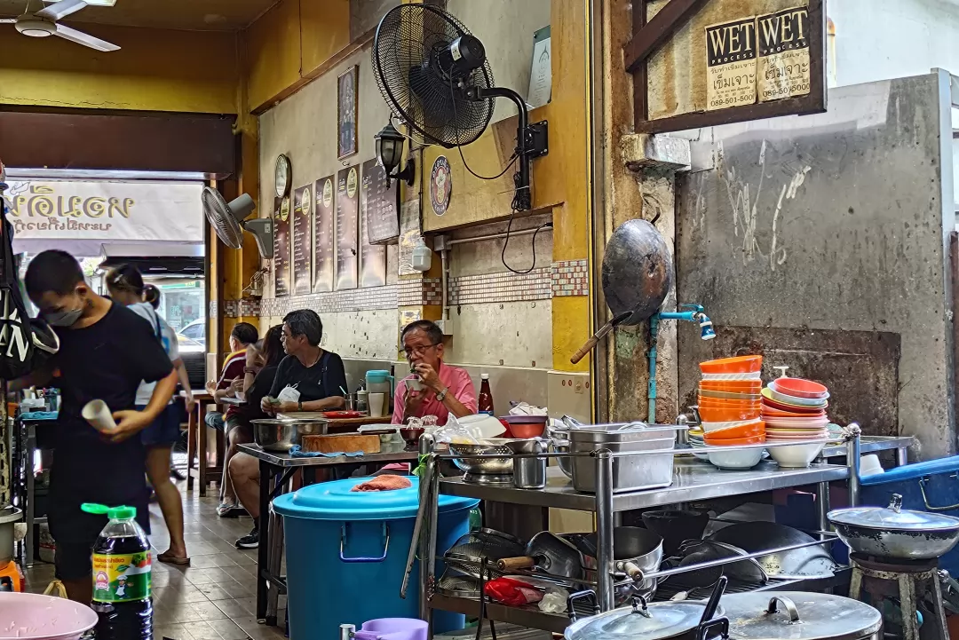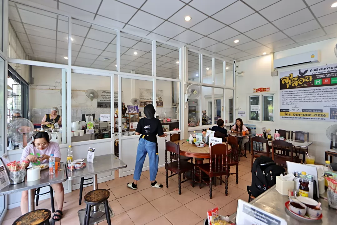 店就在地鐵匯廣(Huai Khwang)站附近。走進店裡,幾乎滿座,疫情後改建加裝冷氣,用餐環境更好。