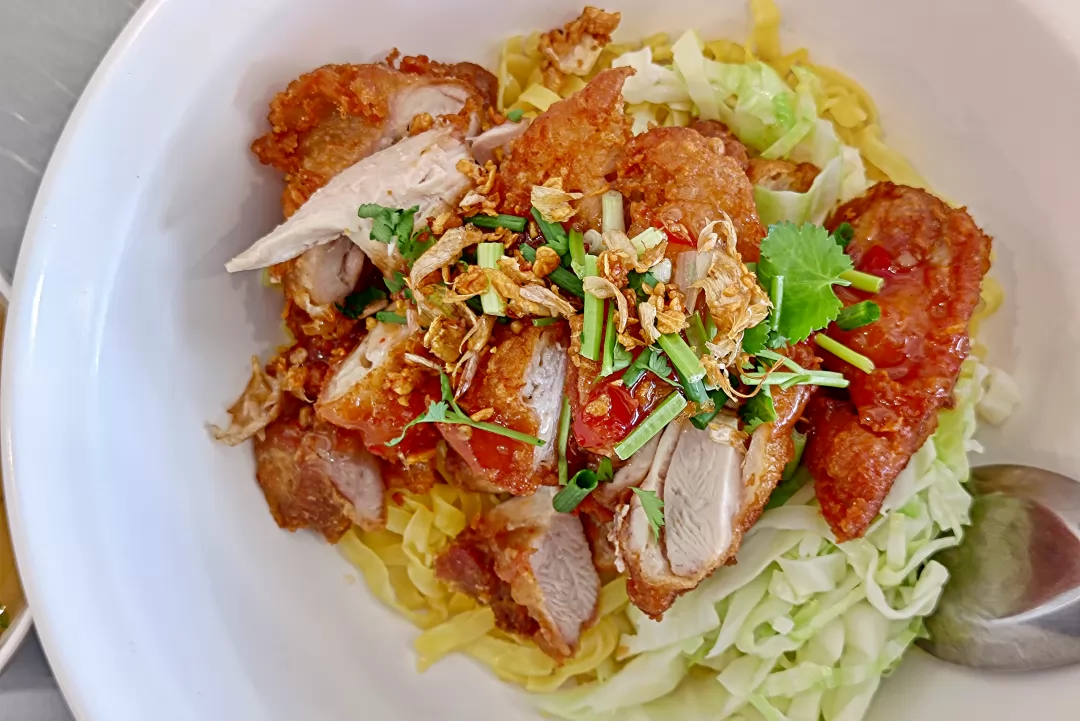 沒有什麼名人加持、沒有亮麗的裝潢、沒有冷氣隱身在巷子裡的撲實小店,有的是實在的好料、有的是數十年如一日的堅持,讓這家連伯雞肉粿條ก๋วยเตี๋ยวไก่ลุงเลื่อน,製作出5星級的炸雞麵,不吃會後悔!