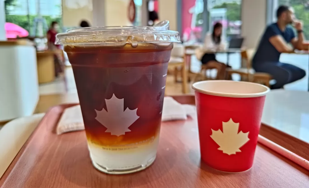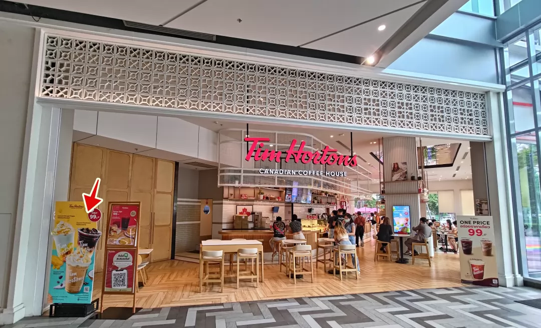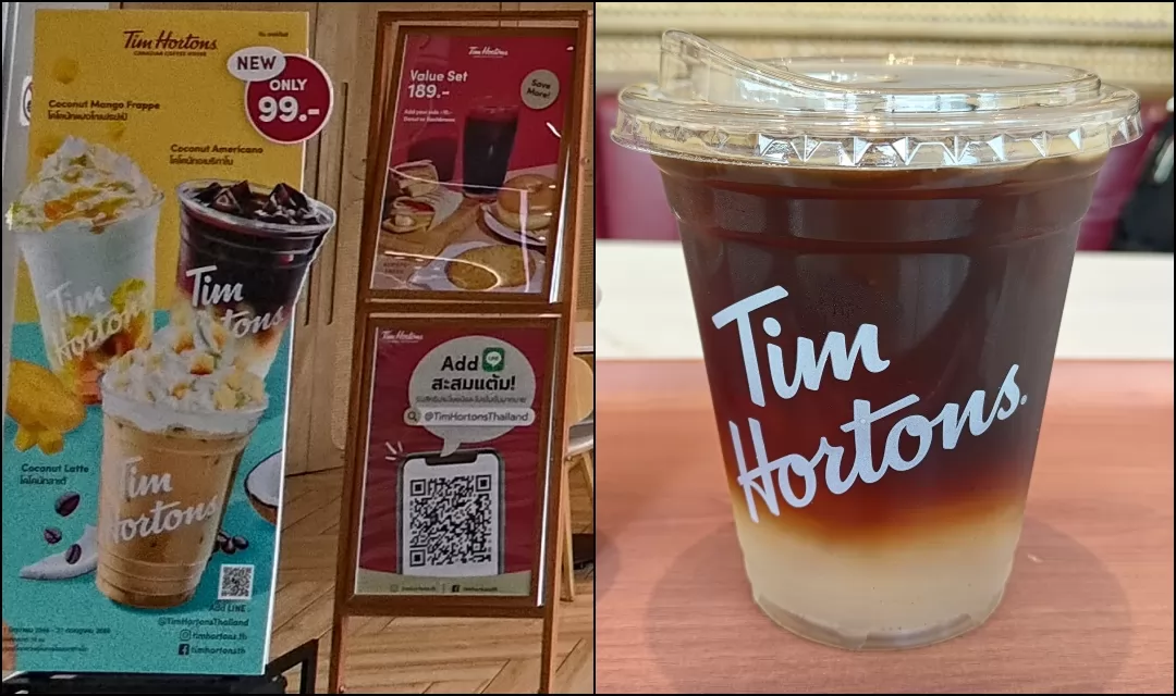 推薦的咖啡店—加拿大連鎖的Tim Hortons咖啡店,在曼谷開了很多分店,主打的飲品就有Coconut Americano,1杯特價99銖。