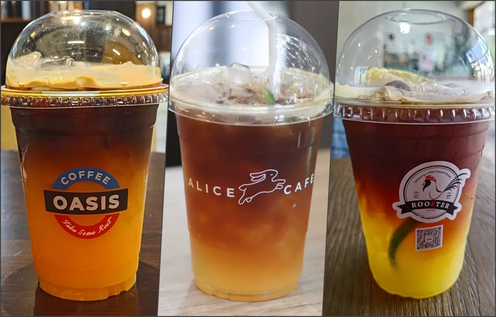 在所有熱帶水果中,橘子汁+咖啡,不管是顏值,還是口味,可以說是最「速配」的,幾年前開發出來後,就廣受泰國人民的歡迎,現在大部分的咖啡店都有賣,1杯價位在70-125銖之間。