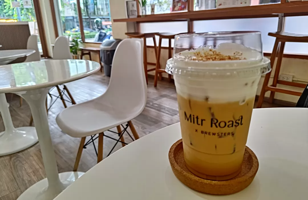 推薦的咖啡店—Mitr Roast X Brewsters(從BTS的Saphan Khwai站往南步行10分鐘,營業時間08.30-17.00),椰奶拿鐵是他們熱銷的飲品,1杯100銖。