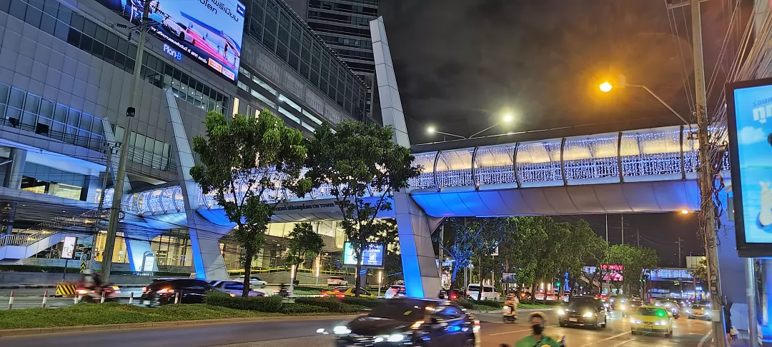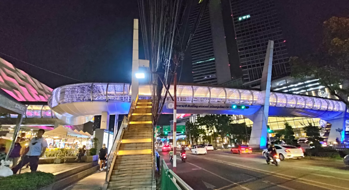 主要的天橋應該是由政府公路局建,穿過拉差達路和瓦他納唐(Walthana Thom)路的雙交叉路上,由於是車多路段,方便行人穿越馬路。