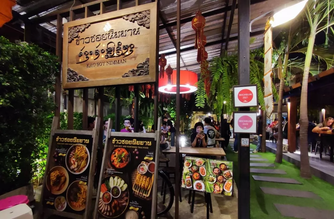 Kao soy Niman(ร้านข้าวซอยนิมมาน)尼曼路的「考摔咖喱麵店」,極受泰國明星喜愛,據說台灣歌壇巨星鄧麗君生前也喜歡來吃,入選2020、2021米其林。