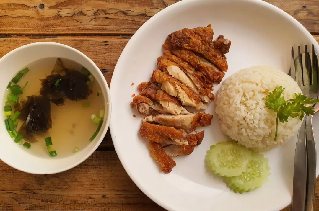 高怡海雞飯(Chicken Rice Koyi;ข้าวมันไก่ โกยี)尼曼路的海南雞飯,無論是選擇皮脆肉鮮的白斬雞,還是選擇香酥脆嫩的炸雞,都能夠得到極大的滿足。