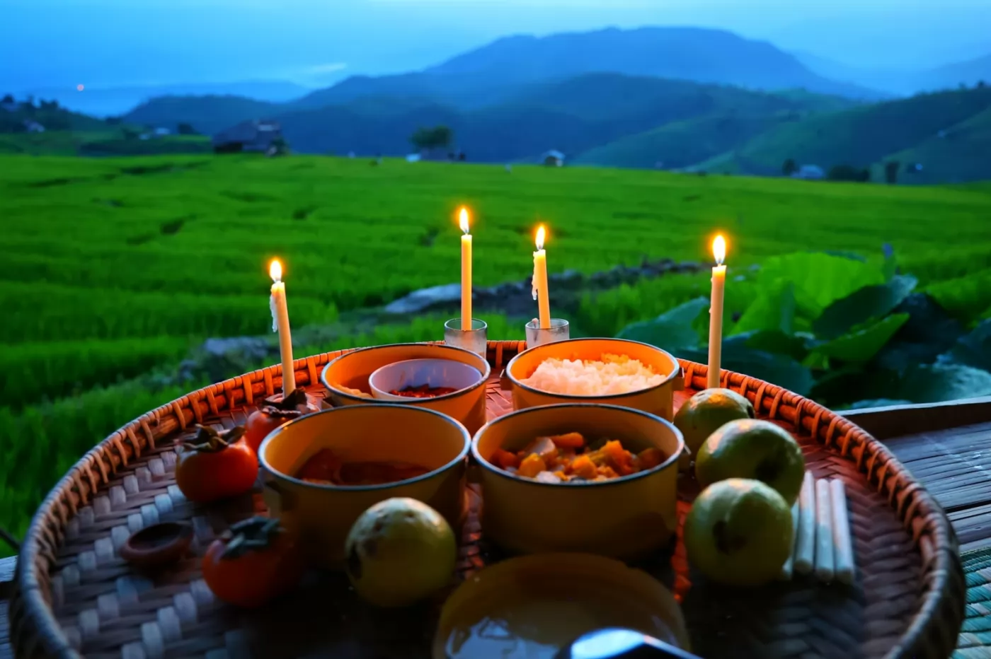 隨便找一家民宿(梯田裡)住下來(一般會包晚餐和早餐),清新的氛圍 放眼望去,到處都是綠色,眼睛真的很舒服。