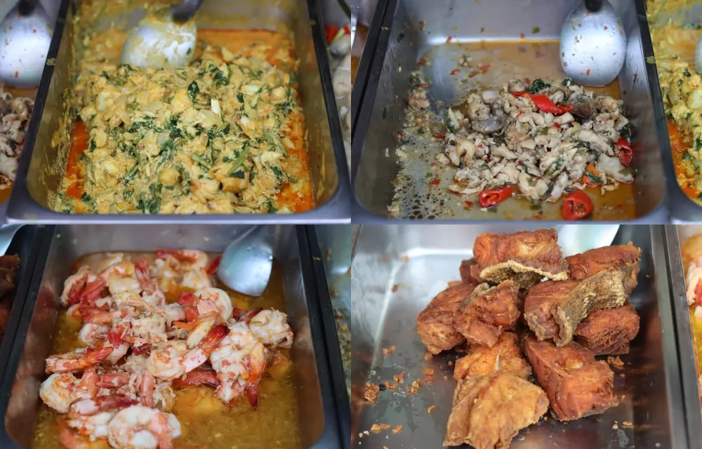 Pa Aew海鮮自助餐(Hiso Curry Rice Pa Aew;ข้าวแกงไฮโซ ป้าแอ๋ว)隱藏在穿過住宅區的小溝旁,卻人氣超旺,真的是「好酒不怕巷子深」!