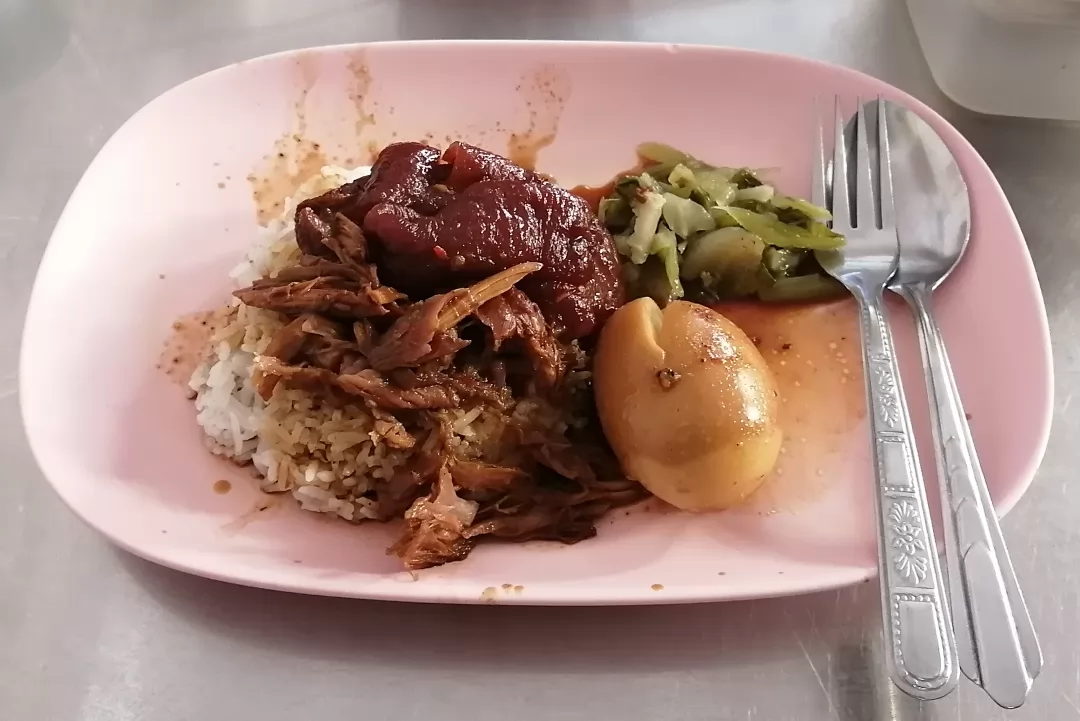 店在MRT的Sam Yot站附近(步行不到 5 分鐘),已經傳給第三代來經營,沒有分店,豬腳飯1盤60銖,加1顆滷蛋則是70銖,豬肉很嫩,滷到夠味卻不太鹹、或過甜,連瘦肉部分都很嫩,一定要配上他們自家的酸菜,淋上辣椒醋,不油不膩的豬肉,超好吃!