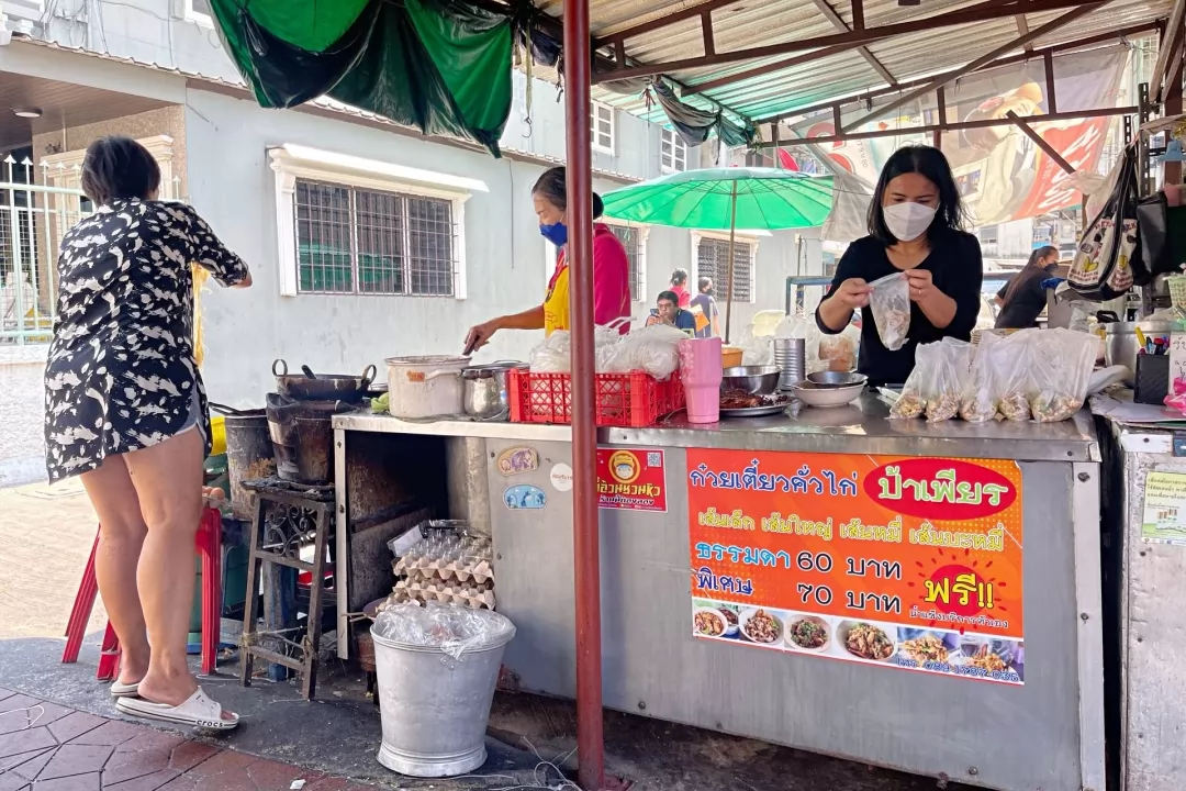 偏姨熱炒雞肉麵(Pan Fried Chicken Noodles Pien;ก๋วยเตี๋ยวคั่ว ไก่ป้าเพียร),與Pa Aew海鮮自助餐在同一區,也是路邊的小吃攤位。