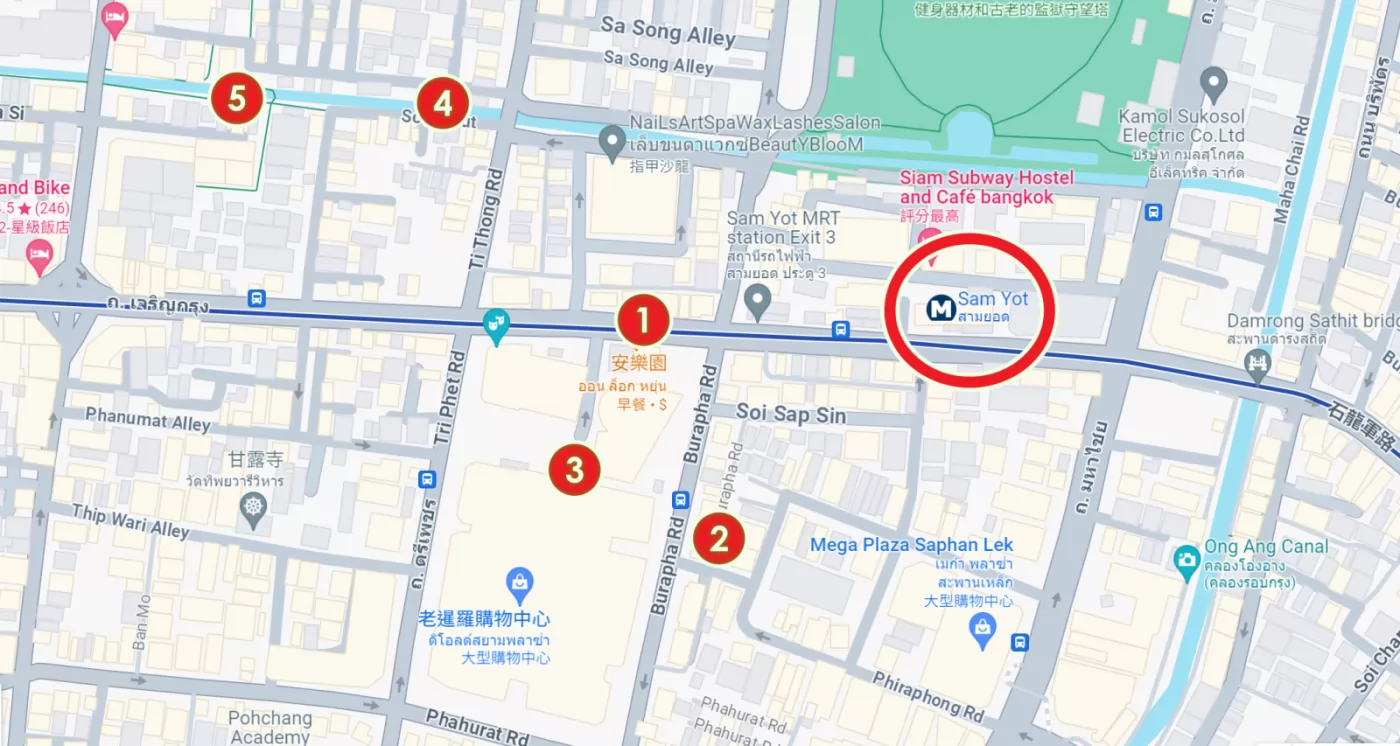 地址:The Old Siam Plaza, 12 Tri Phet Rd, Wang Burapha Phirom, Phra Nakhon, Bangkok 10200