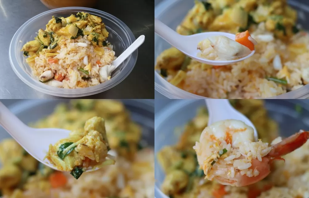 店11:30開門,但差不多11:00食物已經準備好了。點了海鮮炒飯+黃咖哩蟹(120銖),好吃,食材好,味道醇厚開啟咖哩飯的體驗,給滿分10分。