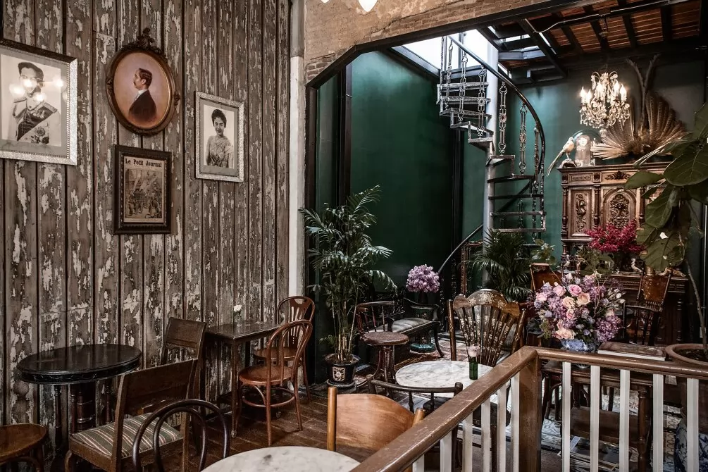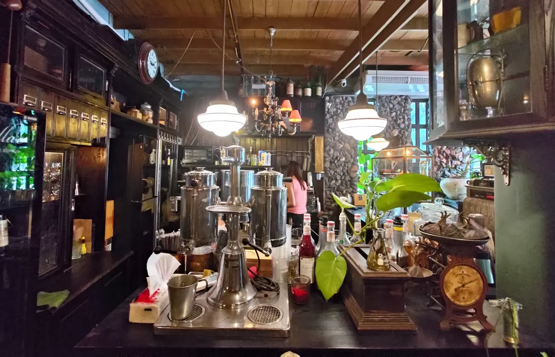 Ha Tien咖啡店揉合眾多文化的復古流,處處都有Tha Tian老社區的影子。咖啡店所在的Soi Pratu Nokyung,屬於臥佛寺所有,一磚一瓦都不能亂碰,店裡擺設的收藏品,值得去慢慢觀賞。