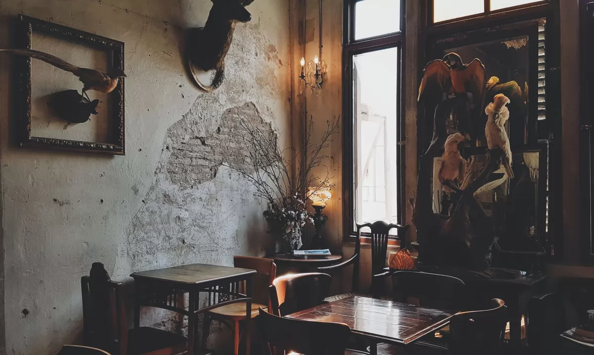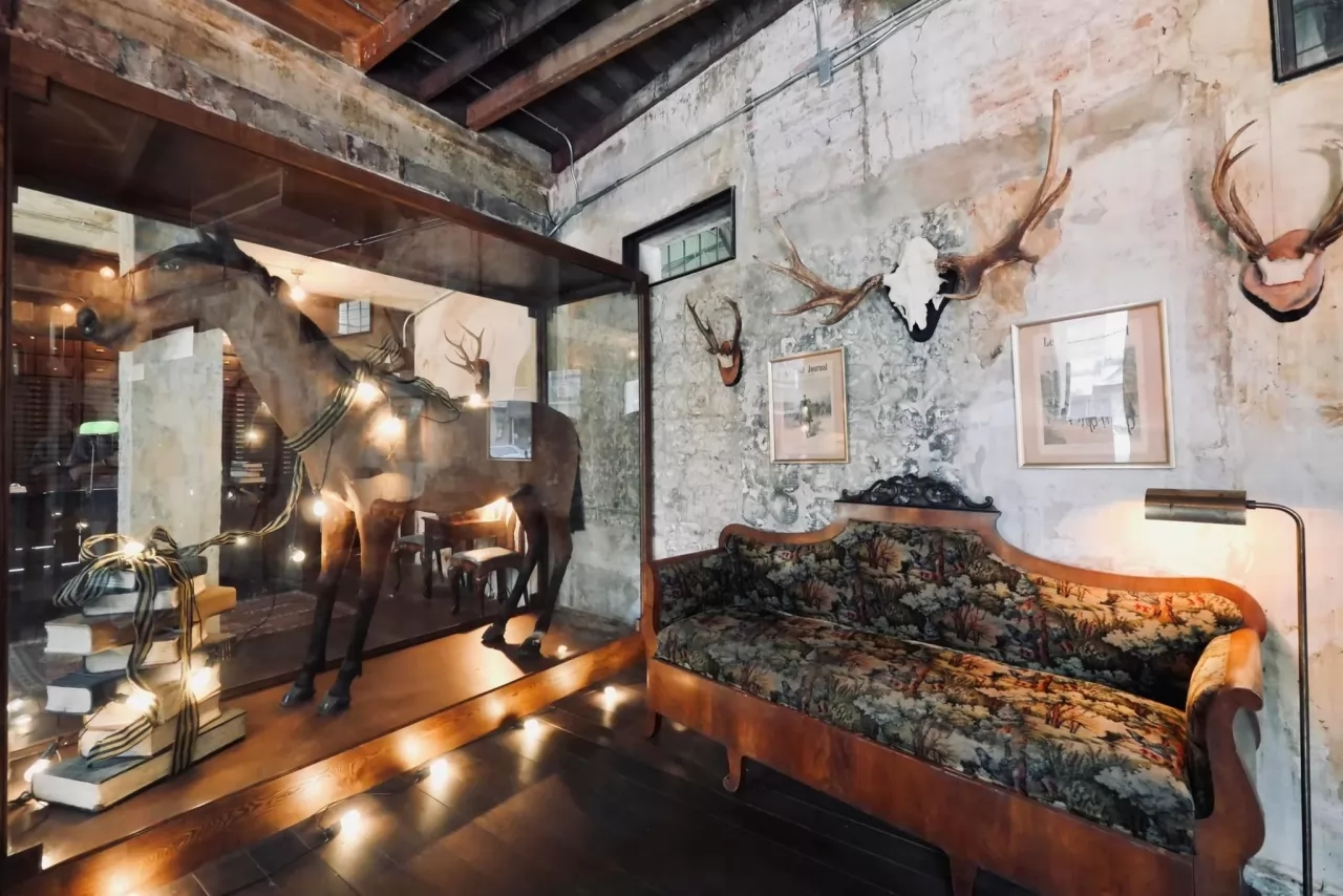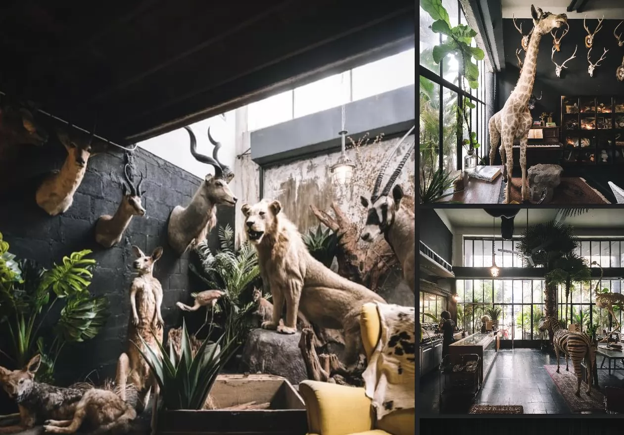 一棟上百年歷史的經典殖民地風格建築混搭著工業風改造而成,陳列的古老的家具,像老式旋轉樓梯,墻上的各種仿動物標本,都超過100年的歷史。喜歡復古的朋友記得收藏。