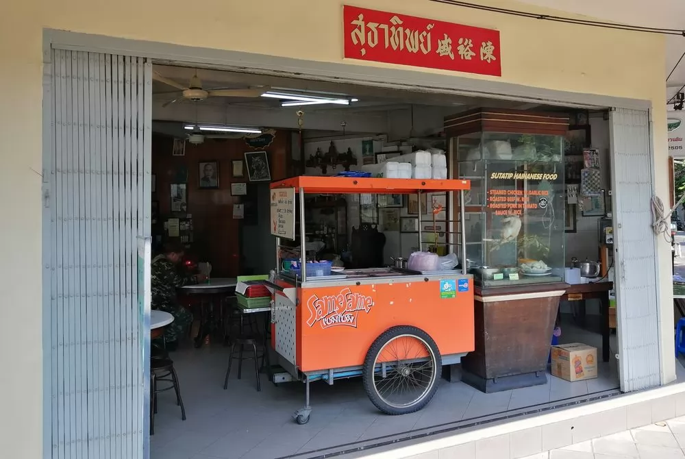1923年開業,在曼谷金山寺( Wat Saket )附近,因店主是海南的華僑,賣點是正宗海南雞飯,數代相傳經營,雖然沒大富大貴,到現在已有96年歷史。