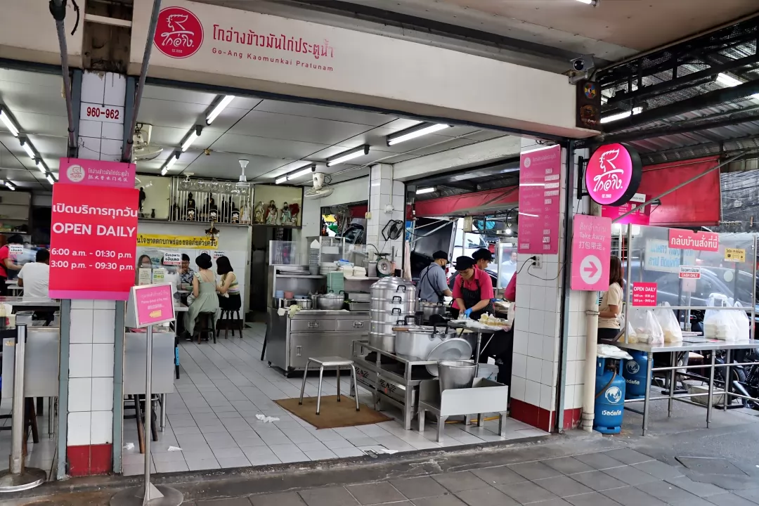 提到曼谷海南雞飯,部落客都會推薦水門市場旁這家老字號的Go-Ang Kaomunkai Pratunam(โกอ่างข้าวมันไก่ประตูน้ำ),不過要想吃到,得排隊的準備!
