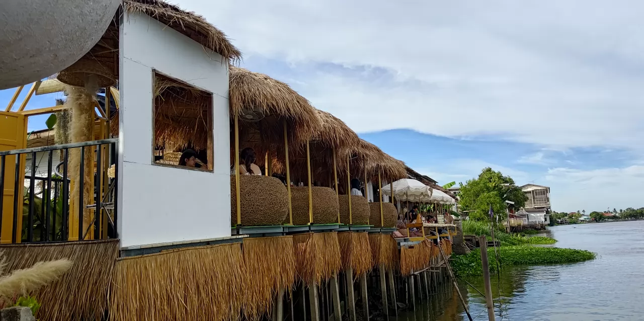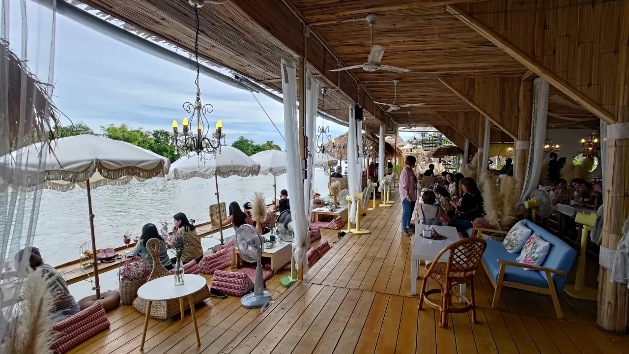 Mong Nam Cafe(มองน้ำ’Cafe)在佛統府那空猜西區,Tha Chin(แม่น้ำท่าจีน)河沿岸的一家人見人愛的咖啡廳。
